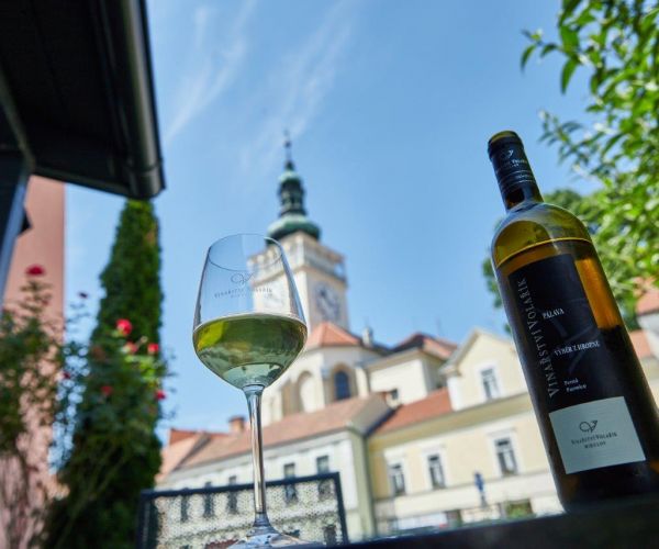 Příjemné chvíle u vína můžete strávit v interieru vinotéky, na venkovní předzahrádce, či na vyvýšené terase, z níž uvidíte většinu dominant Mikulova - Svatý kopeček, Kozí hrádek a Kostel sv. Václava.